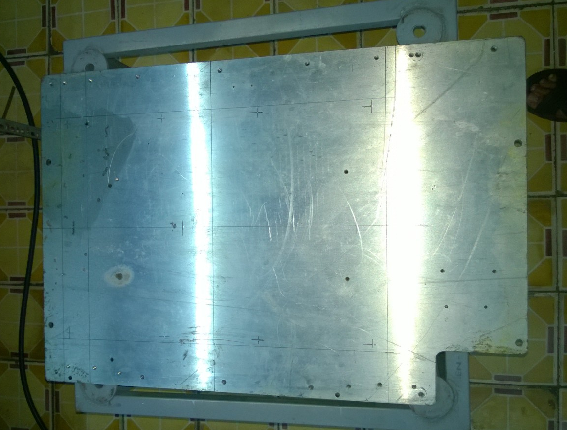 Đã nói “Ruồi bu cùi bắp” thì trước hết phải chuẩn bị cái cùi bắp cái đã hehehe. Cùi bắp là 1 miếng thép phẳng hang tháo combo gì đó của bác Quảng, kích thước 500x700x10. Do bị khuyết 1 miếng nên sử dụng phần còn lại 500x600. Phần thừa ra để nguyên cho đẹp (sau này sẽ là cái mặt bàn nho nhỏ để dao cộ này nọ cho tiện).