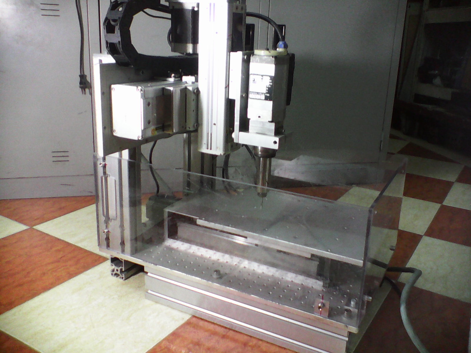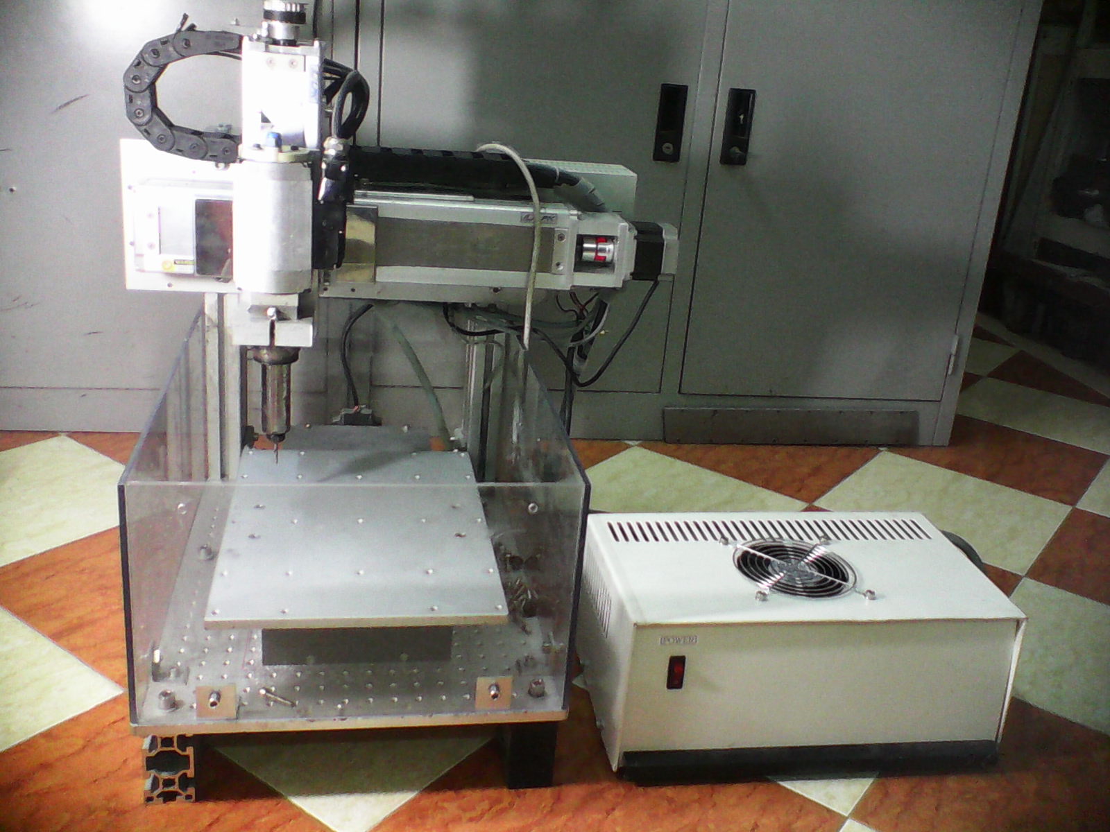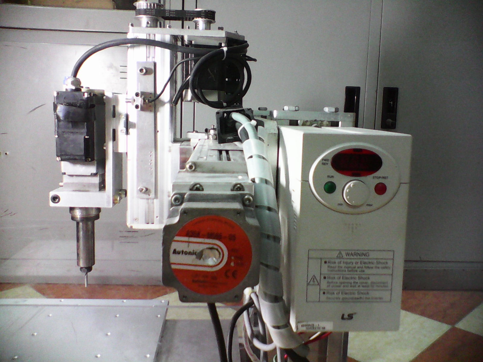 Sơ bộ thì con này H-frame toàn nhôm, hành trình khoảng 200x200x80. X và Z là combo LPK hàn quốc, Y là combo hàng liên doanh Việt- Nhật ( kekeke). Vít me 3 trục bước 5. Cả 3 trục chạy step 5 pha autonics size 60. Spin huyền thoại 130W MICRON, biến tần Ic5-LS 750W.