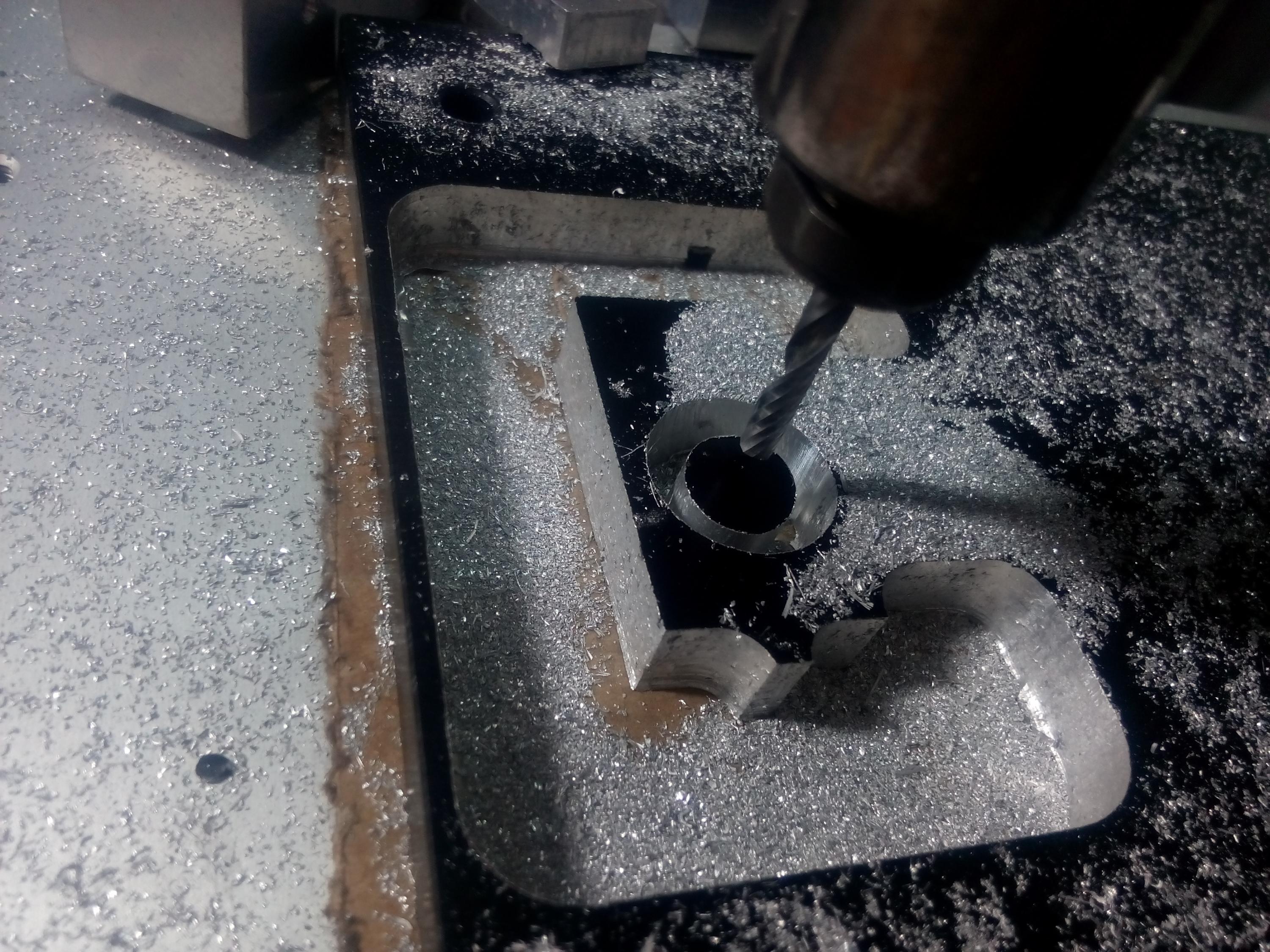 Sau hơn 5 phút hì hụi em nó cũng khoét được cái lỗ 20mm, sâu 10mm.