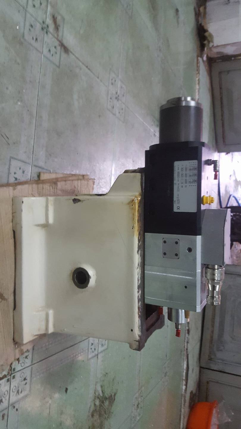 - Sau đó đi mua miếng nhôm 7 , 255x155x30 về làm mặt bích trung gian. Máy cơ nhà em có thước quang 5 phần ngàn, khoan và phay xong bắt lên cái ụ Z và vạt lại.