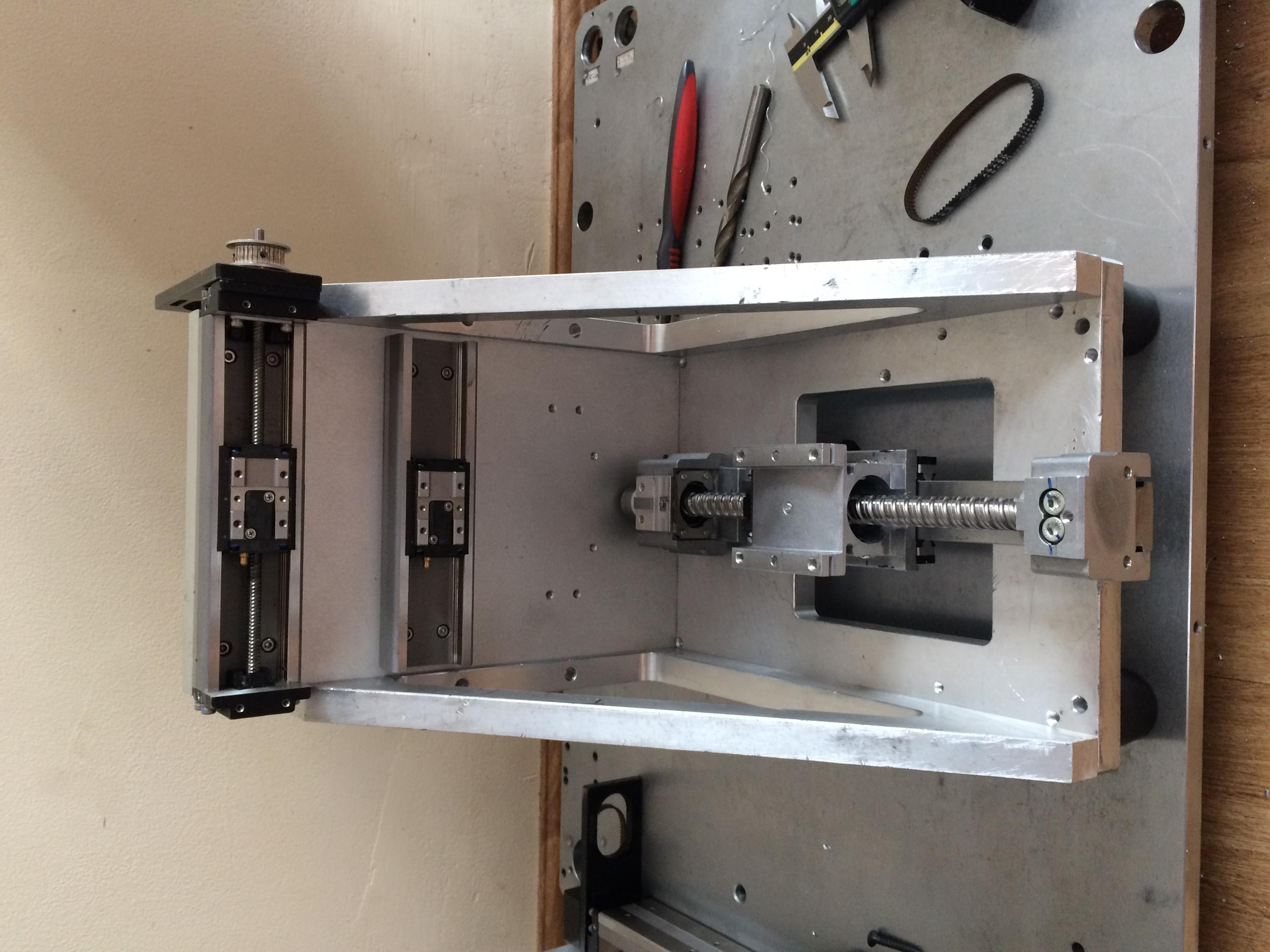 - Do các vitme trong các combo có được đều là bước 6 và 12, mà em thì lại không sưu tầm được cái driver nào có vi bước chia hết cho hai con số này. Đành phải truyền động dây đai với các puli có tỉ lệ phù hợp cho việc điều chỉnh bước tiến của các trục.