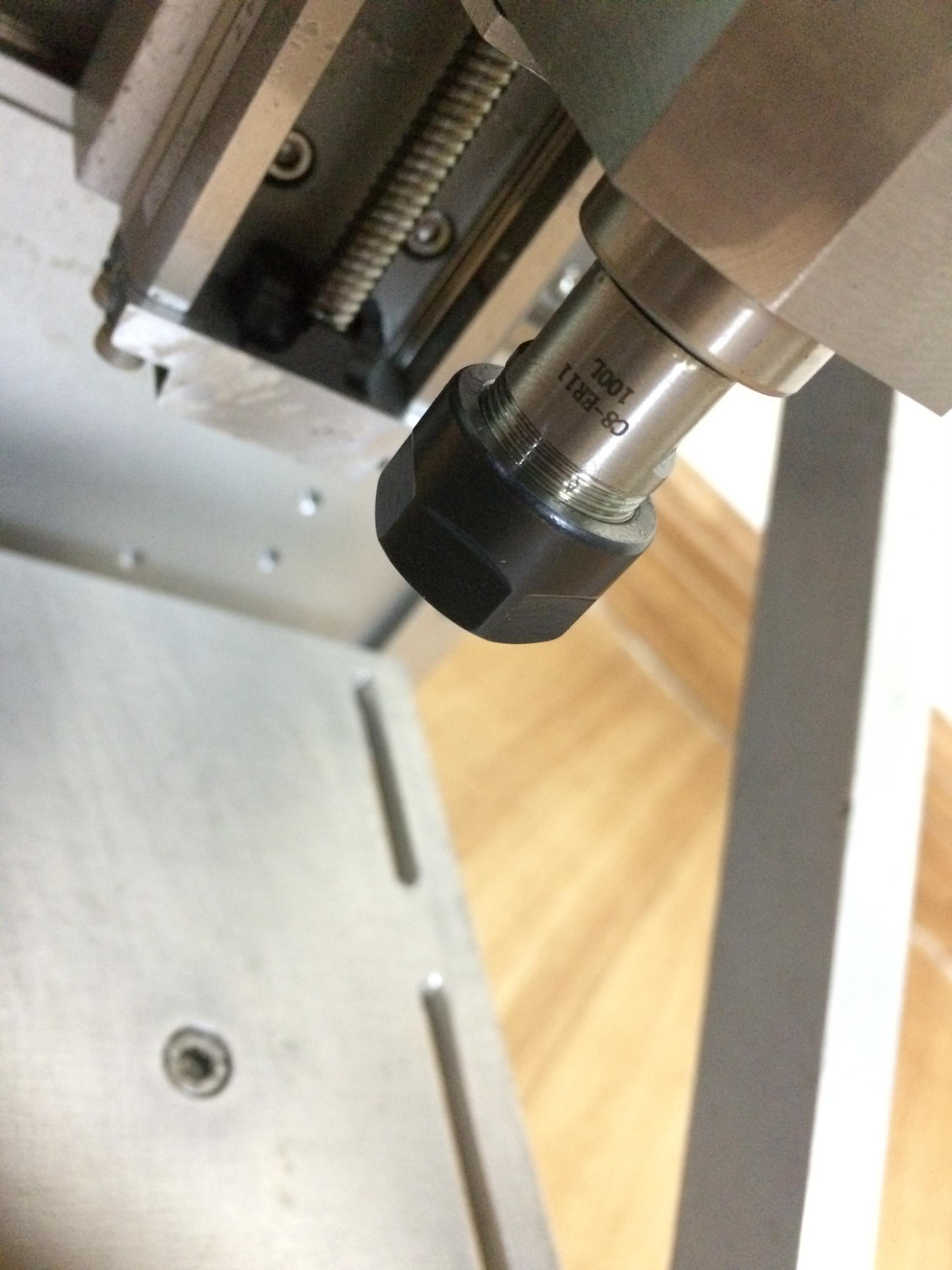 03. Trục chính sử dụng cái ụ bằng inox, đồ bãi (ko biết tháo từ máy gì) + C8-ER11-100L + 03 vòng bi 698z NSK