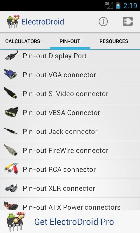 • Port pin-out (USB, Serial, Parallel, Ethernet, RJ, SCART, DVI, HDMI, S-Video, VGA, VESA, Display Port, FireWire, Jack, RCA, XLR/DMX, ATX Power, PC Molex, EIDE, SATA, PS/2-AT, MIDI/Game port, Apple 30-pin, PDMI, OBD-II, 25-pair phone cable color code, Color Code for Fiber Optic Cables; ISO connector for car audio; Arduino pin-outs);