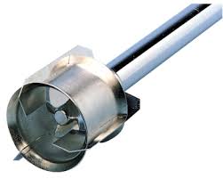 Cánh khuấy nó nằm ở một đầu, tốc độ chân vịt khoảng 500v/ph. Hướng cánh khuấy chếch chếch xuống cạnh dưới của đáy bồn phía bên kia. Nôm na là mặt cắt ngang thì cánh khuấy chỉ vào góc dưới cạnh bên kia, còn mặt cắt đứng, nhìn từ trên xuống thì nó vẫn hướng tấm phía bên kia, đại khái thế này ạ :