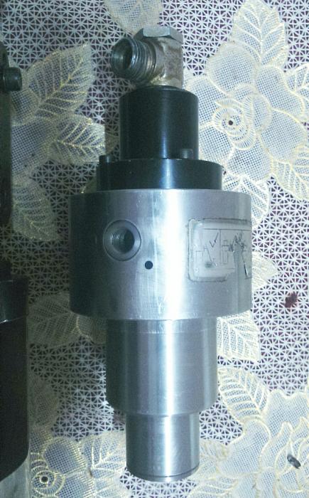 1. Con GAT Rotodisk S2 như hình có 2 đường cấp vào. Trên là khí hoặc hơi dầu hoặc nước tưới nguội, dưới là đường dầu kích vào dể đạp cây ty (Nguyên lý giống xy-lanh thủy lực, cây ty nằm trong ống dài nhỏ phía dưới). Chỉ cần van 1 chiều gắn vào và bơm thủy lực là xong.