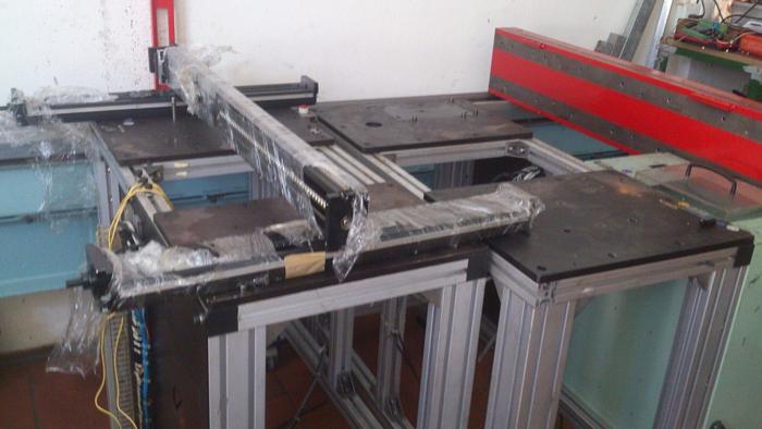 Có hoảng 5 bộ chân máy (nguyên là máy dán keo) của Japan làm bằng nhôm định hình công nghiệp Misumi. KT 930 x 450 x 770. Có 4 bánh xe tải nặng