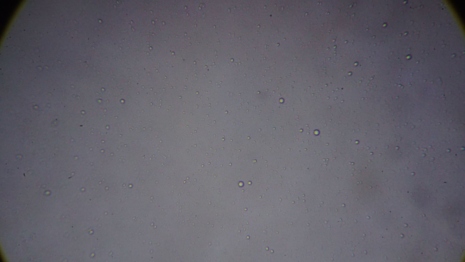 hình dầu mài soi dưới kính hiển vi, có vô số hạt dầu lớn bé trong nước