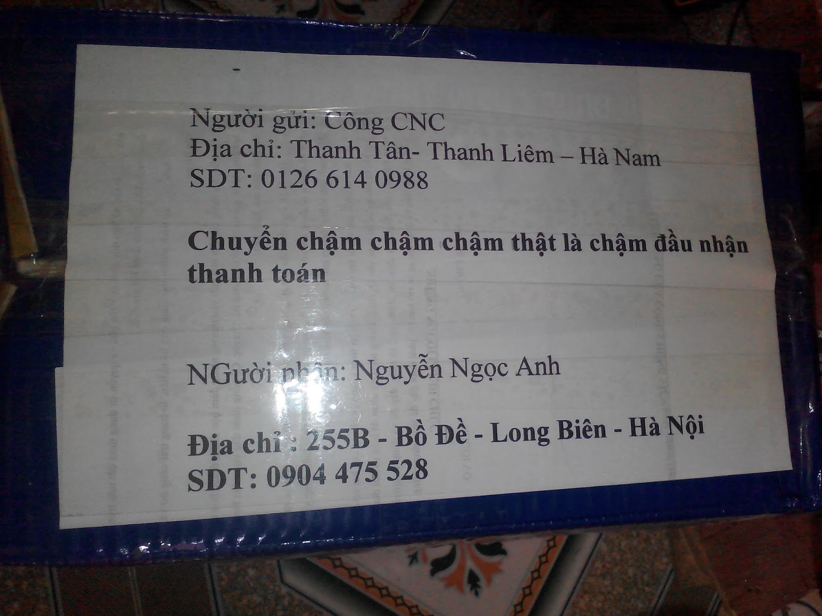 Bác Công A tài quá nhé, em còn chưa kịp cả gửi địa chỉ nữa.... mà hàng đã sắp về tới nơi rồi. Quả là quá nhanh, quá....... ây za suýt đụng hàng![]()